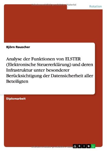 Description. Download Permission. Main menu. Displaying Download Analyse der Funktionen von ELSTER (Elektronische Steuererklärung) und deren Infrastruktur unter besonderer Berücksichtigung der Datensicherheit aller Beteiligten Full Book